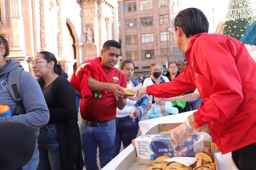 La Presidenta del Sistema Municipal DIF, Estela Arriaga Márquez, en representación del Alcalde Capitalino, Enrique Galindo Ceballos, compartió con las familias potosinas la monumental Rosca de Reyes de 280 metros de largo. La convivencia tuvo lugar en la Plaza de Armas, frente a Palacio Municipal, donde se distribuyeron 600 Niños Dios en este pan tradicional que trae alegría a niñas, niños, adultos y personas adultas mayores.