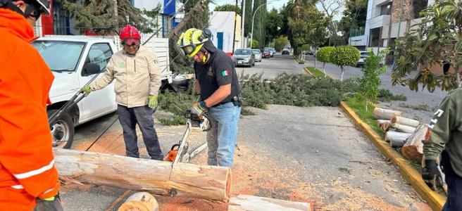 Precisó que se trabaja para retirar árboles y ramas en el Boulevard del Río Santiago y acordonar zonas de riesgo para los automovilistas, además que desde temprana hora se solicitó cerrar los parques Tangamanga I y II y se mantiene comunicación con la Secretaría de Educación para pedir que se eviten realizar actividades al aire libre en los planteles educativos.