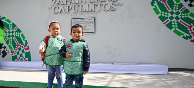 Junto a la presidenta honoraria del Sistema Estatal para el Desarrollo Integral de la Familia (DIF), Ruth González Silva, el Mandatario Estatal afirmó que, para dignificar la educación luego de décadas de abandono por parte de la herencia maldita, este año se construirán 100 nuevas escuelas y se seguirá impulsando obras de pavimentación en apoyo a la movilidad.
