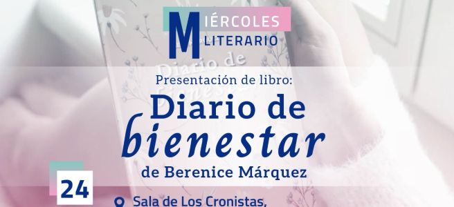 El Gobierno de la Capital invita a la presentación del libro: “Diario del Bienestar”, dentro del ya tradicional Miércoles Literario de la Dirección de Cultura Municipal, este 24 de enero en el Centro Cultural Palacio Municipal a las 6 de la tarde.