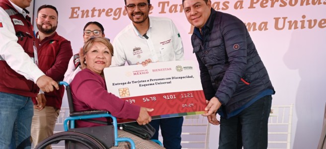 Acompañado por la presidenta honoraria del Sistema Estatal para el Desarrollo Integral de la Familia (DIF), Ruth González Silva, en las instalaciones del Centro de Rehabilitación y Educación Especial (CREE), Gallardo Cardona entregó tarjetas de pensión y destacó que las y los potosinos con discapacidad, tendrán el derecho de este apoyo.
