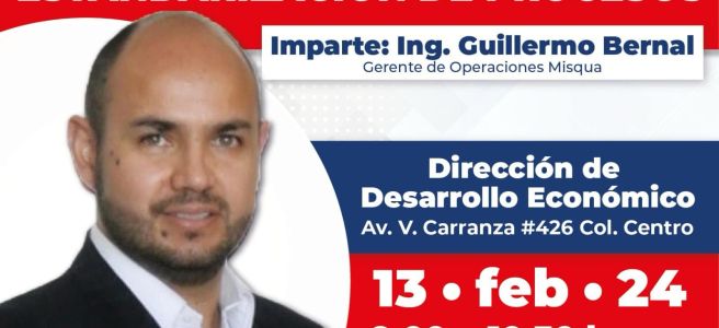 Así lo informó el Director de la dependencia municipal, Jaime Chalita Zarur, quien mencionó que la agencia consultora Misqua será la que imparta el curso “Estandarización de Procesos” de manera presencial, a cargo del Ing. Guillermo Bernal, gerente de operaciones, el día 13 de febrero.