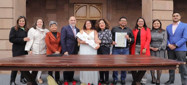 La ceremonia tuvo como marco, la explanada de la Plaza de Armas, frente al Palacio Municipal, donde se dieron cita las parejas que decidieron dar el siguiente paso y formalizar su situación. Tomadas de la mano y con sus mejores atuendos y ramo de flores en mano, esperaron el turno para recibir su Acta de Matrimonio, hubo parejas que fueron acompañadas de sus hijos e hijas. Los nuevos esposos, emocionados celebraron este acto, se tomaron fotografías para finalmente compartir pastel y recibir un obsequio de parte del Alcalde Enrique Galindo y la Presidenta del DIF Municipal, Estela Arriaga Márquez.