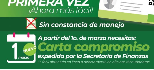 La obtención de la carta compromiso es sencilla y los únicos medios para tramitarla es tanto en línea en la página oficial de Finanzas como en las distintas oficinas recaudadoras de todo el Estado, y será requisito para el trámite de licencia de primera vez, además de original y copia de identificación vigente del Estado de San Luis Potosí (INE o pasaporte); original y copia de dos comprobantes de domicilio en el Estado (uno con antigüedad de un año y otro con antigüedad de tres meses).