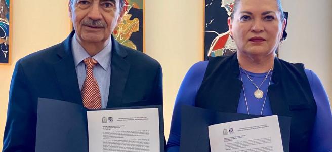 Por parte de la máxima casa de estudios, signó el acuerdo el rector doctor Alejandro Javier Zermeño Guerra, y por la UAPA, la secretaria general maestra Martha Lucía López Almaguer; atestiguaron el secretario general maestro Federico Arturo Garza Herrera y el abogado general licenciado Joel González de Anda, entre otros funcionarios de la administración.