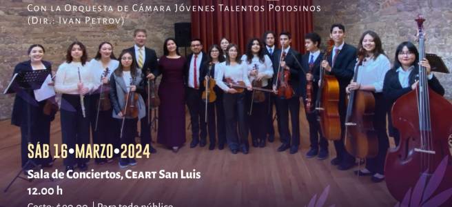 La Orquesta de Cámara Jóvenes Talentos Potosinos, es un proyecto formado hace seis años y desarrollado por CEART y Centro Cultural Internacional de SLP, encabezado por el maestro Iván Petrov, quien cuenta con más de 25 años de trayectoria artística en foros nacionales e internacionales.