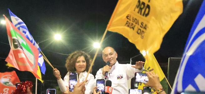Galindo Ceballos agradeció el respaldo total del PRI, PAN y PRD, así como sus militantes y simpatizantes, que hoy se han hermanado gracias al amor que tienen por México y por San Luis Potosí.