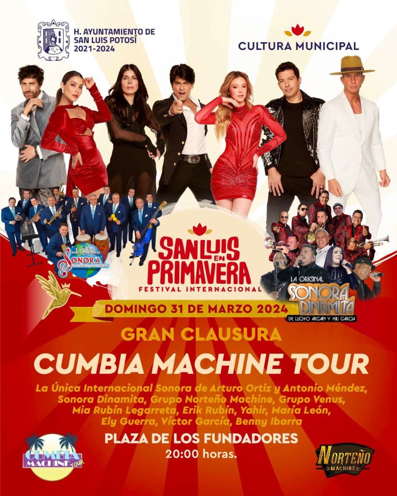 H. Ayuntamiento de San Luis Potosí alista el Festival Internacional San Luis en Primavera, mismo que se desarrollará del 23 al 31 de marzo del 2024, en 9 sedes y calles del Centro Histórico de San Luis Potosí, eventos completamente gratuitos y para todos los públicos.