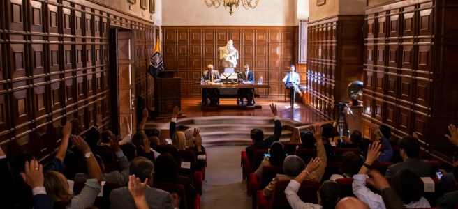 Miembros de la FUP en un acto que simulaba una falsa democracia se inconformaron ante la decisión del CDU. Representantes estudiantiles de Ingeniería y Economía y la abstención de Medicina no estuvieron de acuerdo con la violación a los estatutos que proponían los otros representantes de los alumnos.