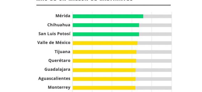 El tercer lugar de la ciudad de San Luis Potosí es solamente superado por Mérida y Chihuahua; la capital potosina se encuentra por por arriba de Valle de México, Tijuana, Querétaro, Guadalajara, Aguascalientes, Monterrey, Saltillo y Mexicali.