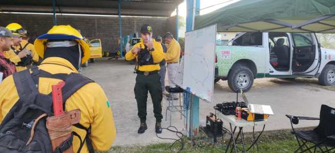 La dependencia informó que desde el viernes el personal se trasladó al lugar donde se encuentra el campamento para participar junto con brigadistas de la Comisión Nacional Forestal (Conafor), Secretaría de la Defensa Nacional (Sedena) y de los municipios de Tamasopo, El Naranjo, Rioverde y Ciudad del Maíz donde esta mañana establecieron las estrategias para combatir los frentes activos del incendio forestal.