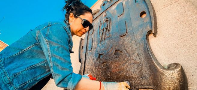 La Unidad de Gestión del Centro Histórico del Ayuntamiento de San Luis Potosí, a través del área de Patrimonio Cultural Conservación y Proyectos, realiza la eliminación de grafiti del Escudo de Armas de la ciudad que se encuentra en la Plaza de Fundadores y otras piezas escultóricas de bronce que se ubican en la zona Centro, luego de que fueran intervenidas con pintura en aerosol.