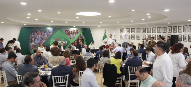 Empresarios y empresarias afiliadas a la Cámara Nacional de Comercio, Servicios y Turismo (Canaco-Servytur), así como a la Asociación Mexicana de Profesionales Inmobiliarios (AMPI), se reunieron la mañana de este viernes con las y los candidatos a puestos de elección popular federales y municipales por el Partido Verde Ecologista de México (PVEM).