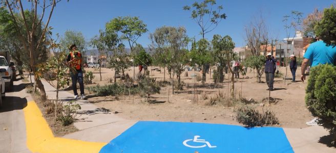 La alcaldesa de San Luis hizo un recorrido por las calles de Valle de la Aurora y Molino Rojo, para dirigirse sobre calle Molino Rojo oriente y llegar al área verde ubicada entre San Fermín, Torre de Babel y San Gabriel, donde además de supervisar las intervenciones, atendió a vecinas y vecinos de la zona, así como de colonias aledañas.