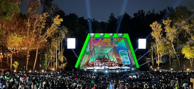 El espectáculo fusionó la música en vivo con la proyección de video mapping, sumergiendo a grandes y pequeños en el entrañable mundo de los cuentos de Cri-Cri. Desde el primer acorde hasta la última nota, el público disfrutó y coreó las emblemáticas canciones que marcaron su niñez.