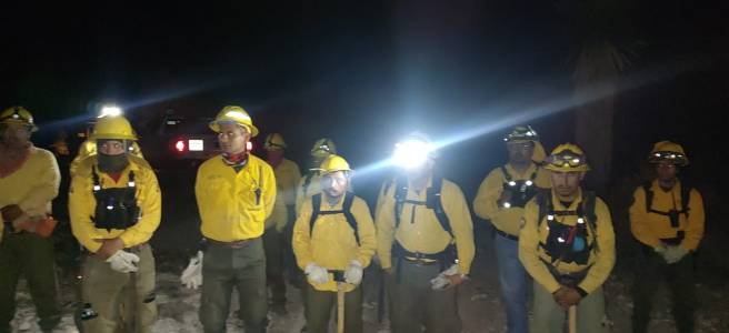 Se cuenta con 120 brigadistas de los cuales 10 pertenecen a la Comisión Nacional Forestal (Conafor); 30 de la Secretaría de la Defensa Nacional (Sedena), Protección Civil Estatal seis; brigadistas de protección civil de diferentes municipios 30 y voluntarios tres; mientras que Nuevo León envió a 44 elementos, quienes trabajan durante día y noche para avanzar en el combate del incendio.