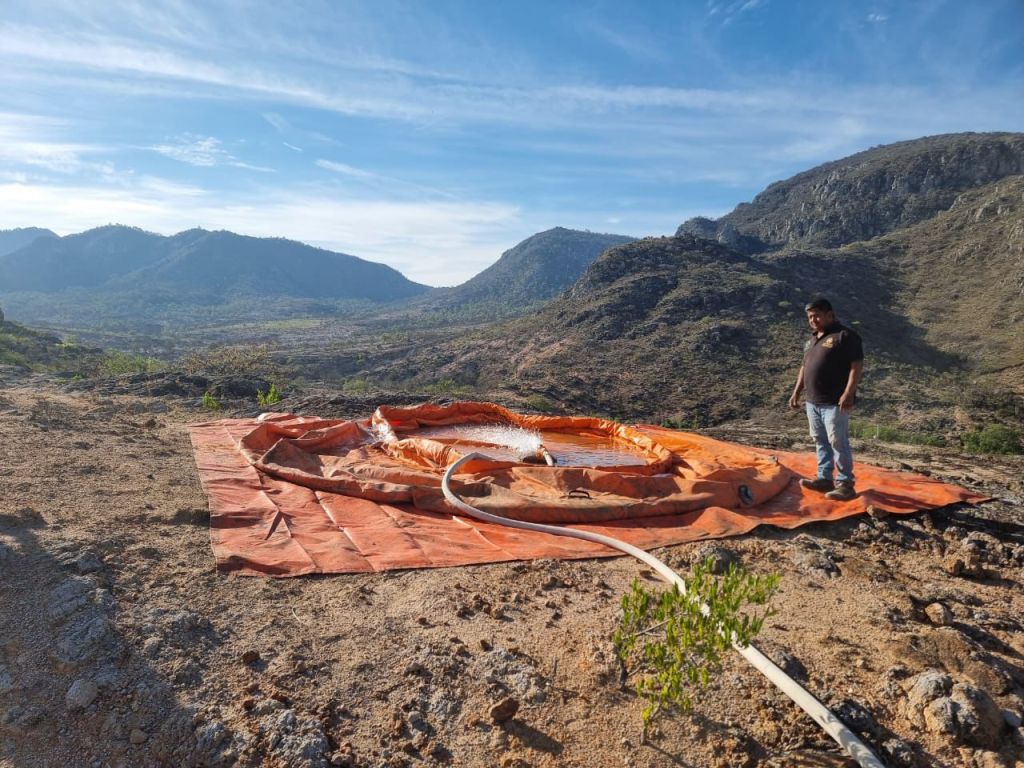 Desde temprano se instaló una bomba de agua y tanque colapsable en la comunidad El Camarón en Tierra Nueva con el objetivo de que el helicóptero cargue agua de un punto más cercano al fuego.