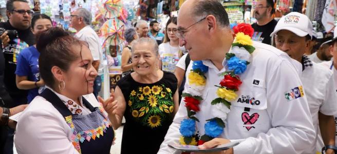El candidato a la presidencia municipal de San Luis Potosí por la coalición que conforman PAN, PRI y PRD señaló que durante los próximos tres años se realizarán acciones de rescate al Mercado República: “Por eso necesitamos que voten por mi, por los candidatos de la coalición, para tener proyectos conjuntos por el bien de toda la ciudad”.