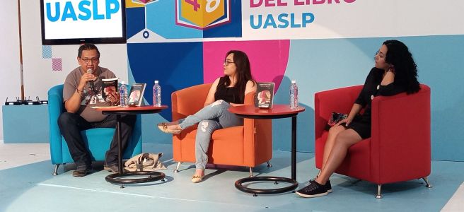 Por otro lado, Claudia Quezada, egresada de El Colegio de San Luis, quien se desempeña como gestora cultural agradeció a la UASLP la invitación, y dijo que esta es la primera vez que dos autoras de la obra están juntas hablando del texto completo.