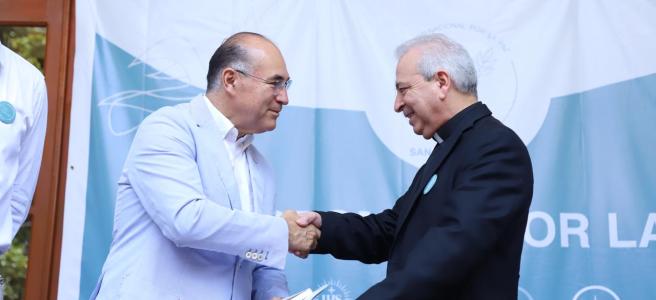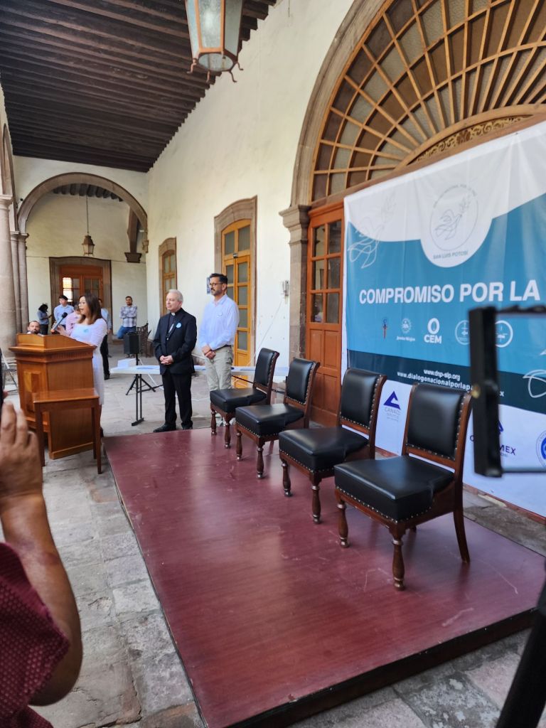 Testigos de la firma los convocatoria, el señor Arzobispo Jorge Alberto Cavazos Arizpe; Alfredo Aguilar Pelayo, enlace del Diálogo Nacional por la Paz Capítulo San Luis, y el presbítero Laurencio Galván Nieto, Vicario de Vida Consagrada.