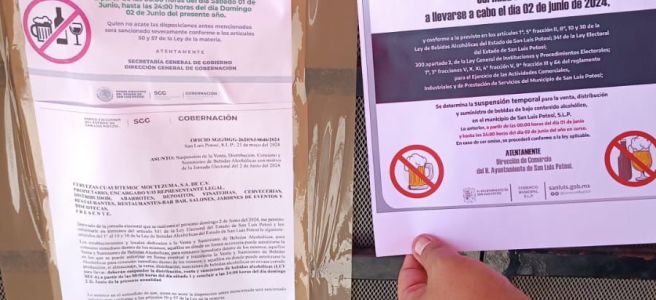 Les recuerda a todos estos comercios, que los horarios para suspender dicha venta son a partir de las 0 horas del día 1 de junio y hasta las 24 horas del día 2 de junio del 2024. Quienes no respeten esta disposición se harán acreedores a multas y clausuras ya sea de forma temporal o definitiva.