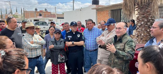 En el recorrido por Villa de Pozos estuvo presente el Presidente Municipal de la Capital, Enrique Galindo Ceballos; el Delegado Gerardo Ávila Rodríguez; así como la Secretaría de Seguridad y Protección Ciudadana Municipal, la Dirección de Servicios Municipales, la Dirección de Gestión Ecológica, el Interapas y el DIF Municipal, por parte del Ayuntamiento de San Luis Potosí; por el Gobierno del Estado participan la Guardia Civil Estatal, los Servicios de Salud y la Comisión Estatal del Agua. Por parte del Gobierno Federal participan Conagua e IMSS; además del Cuerpo de Bomberos, de parte de la sociedad civil.