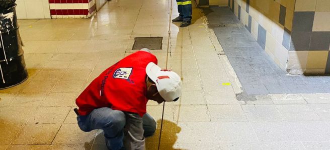 El Ayuntamiento de San Luis Potosí realiza el operativo de desazolves en el mercado La Merced, por parte de la Cuadrilla de Respuesta Inmediata de la Unidad de Gestión del Centro Histórico, que ejecuta trabajos de limpieza con varillas de desazolve manual en el alcantarillado al interior de este mercado.