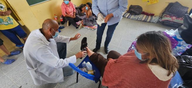 Esta mañana acudieron colaboradores y colaboradoras de este organismo, a brindar atención médica, entregar ropa y diversos productos con el fin de aliviar las necesidades inmediatas de las familias.
