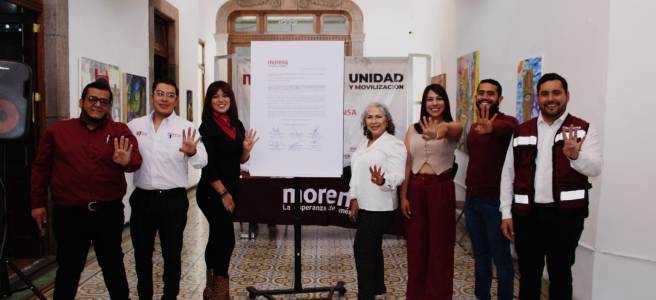 La Dirigente Estatal, resaltó que dentro de los compromisos que el día de hoy firmaron los próximos legisladores destacan, que se impulsará y se respaldará desde el Congreso Local sin regateos, con disciplina, solidaridad y firmeza, el programa político económico, social y ético de la Cuarta Transformación.