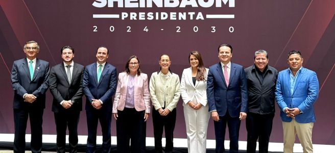 La virtual Presidenta electa de México Claudia Sheinbaum Pardo, sostuvo una reunión de trabajo con las y los gobernadores del noroeste del país para tratar temas y proyectos en común, donde destacó la Inversión Extranjera Directa (IED) en la región, las ventajas de los estados al adherirse al Imss-Bienestar e informó que se creará un grupo de trabajo con la Comisión Nacional del Agua (Conagua) para revisar y mejorar la gestión y suministro del líquido, además de la mejora de la coordinación en materia de seguridad, el fortalecimiento de la Guardia Nacional y la vigilancia en las carreteras, entre otros importantes temas.