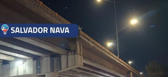 La Dirección de Servicios Municipales del Ayuntamiento de San Luis Potosí informa que, durante un recorrido de supervisión del Alumbrado Público Municipal, se detectaron luminarias apagadas en el bulevar Salvador Nava Martínez, específicamente en el puente de Coronel Romero.