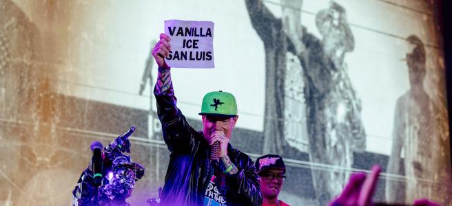 El principal exponente del rap de finales de los 80 e inicios de los 90, Vanilla Ice, y su banda, interpretaron éxitos, como «Ice Man»; «Ninja Rap»; «Ride the Horse»; «No Woman», «No Cry»; y por supuesto «Ice Ice Baby», encontrando una identidad plena con el público potosino con quien convivió a plenitud invitando a un buen número de asistentes a subir al escenario y cantar a coro.