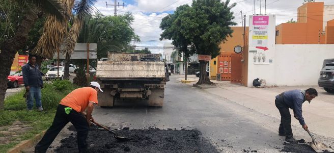 Asimismo, con material de mezcla asfáltica se atendieron: República de Colombia, de Av. Juárez a Constitución, colonia Satélite; Trojes de la Pradera esquina Plan de Guadalupe, colonia Juan Sarabia; Plan de Guadalupe, tramo de Precursores de la Revolución a Artículo 123, colonia Juan Sarabia; Estrella, de Observatorio a bulevar Españita, colonia Del Llano; Lisboa, de Florencia a Roma, colonia Providencia; Berna, en el tramo de Italia a Suiza, de la colonia Providencia; Italia, de Av. Ricardo B. Anaya a Berna, en colonia Providencia y Cordillera de Los Alpes esquina Salvador Nava, colonia Lomas 3ª. sección.