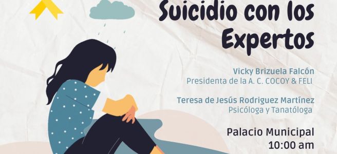 Palacio Municipal será el recinto que reciba a los expertos que abordarán la prevención del suicidio: Vicky Brizuela Falcón, presidenta de la Asociación Civil Cocoy & Feli, y Teresa de Jesús Rodríguez Martínez, psicóloga y tanatóloga. La plática será a las 10:00 horas este próximo jueves 12 de septiembre, con acceso totalmente gratuito.