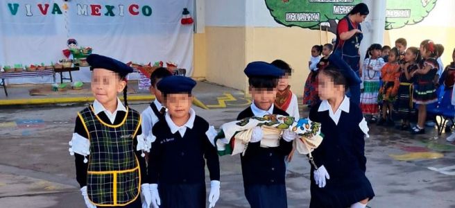 A más 800 niños y niñas de educación básica se les fomentan las tradiciones y el símbolo de identidad como mexicanas y mexicanos, esto a través de los festejos realizados en cada centro educativo.