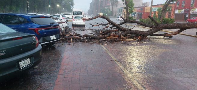 La Dirección de Servicios Municipales realiza limpieza de alcantarillas, con el objetivo de facilitar el desfogue de agua y reducir los niveles de agua sobre la vía pública. También se realiza la recolección de árboles que han caído debido al reblandecimiento de la tierra, como ocurrió esta tarde en la Alameda Juan Sarabia, donde la Coordinación de Parques y Jardines atiende esta situación.