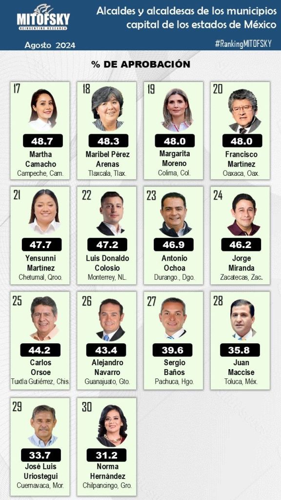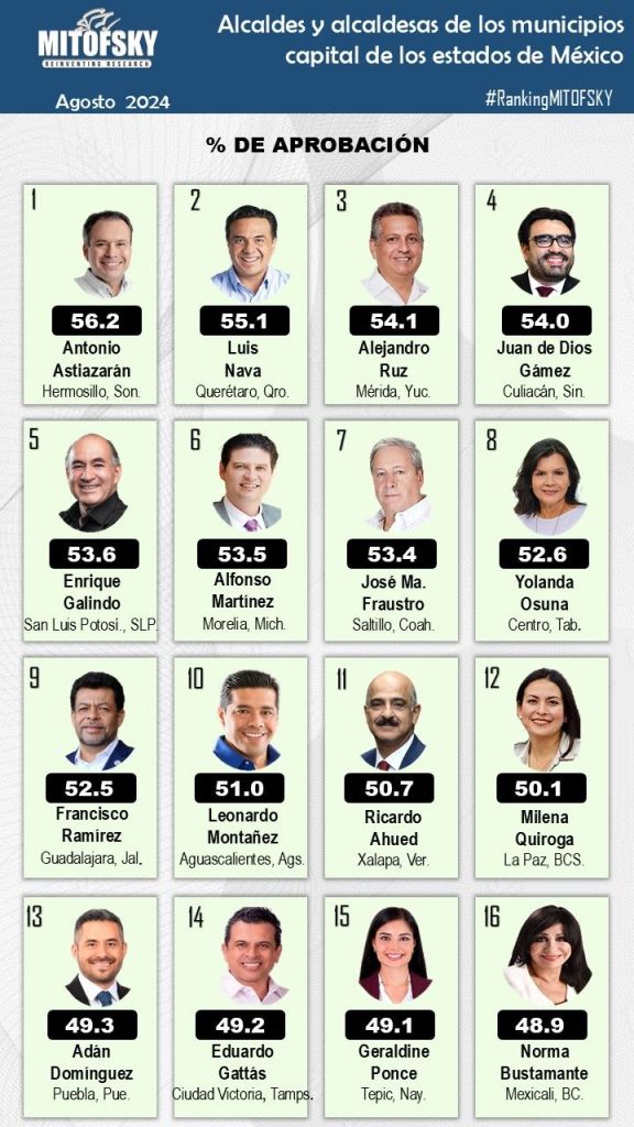 La evaluación o ranking Mitofsky es del mes de agosto del presente año.
