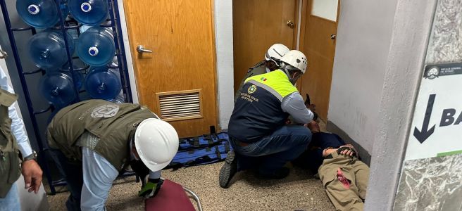 La dependencia apoyó entre otros lugares, a la Fiscalía General del Estado (FGE), cuyos integrantes cumplieron con los protocolos establecidos, con un tiempo de evacuación del edificio de cinco minutos con 53 segundos, y con la hipótesis de un sismo con una persona lesionada, que fue atendida y llevada a la ambulancia por las brigadas de primeros auxilios, con la evacuación de 420 trabajadores del edificio.