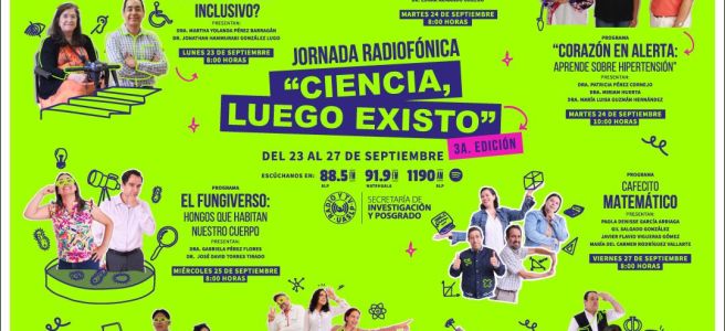 En el marco del Día Internacional de la Cultura Científica, como la Feria de Ciencia y el Festival de Química, la Dirección de Radio y Televisión junto con la Secretaría de Investigación y Posgrado de la UASLP, organizó “Ciencia, luego existo”, un proyecto con la finalidad de divulgación científica a través de diversas actividades.