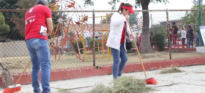 Durante la jornada dominical, directores y trabajadores municipales estuvieron en la Colonia del ISSSTE, donde junto con los vecinos realizaron labores de limpieza, pintura, mejoramiento del alumbrado, rescate de áreas verdes y espacios deportivos.