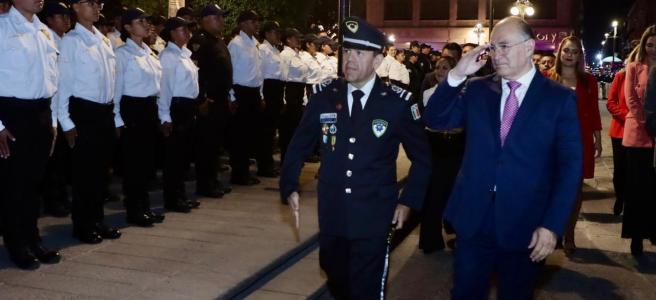 COMPROMISO Y PASIÓN PIDIÓ GALINDO A LA POLICÍA MUNICIPAL EN LA ENTREGA DEL BASTÓN DE MANDO, RATIFICA A VILLA AL FRENTE DE LA SSPC