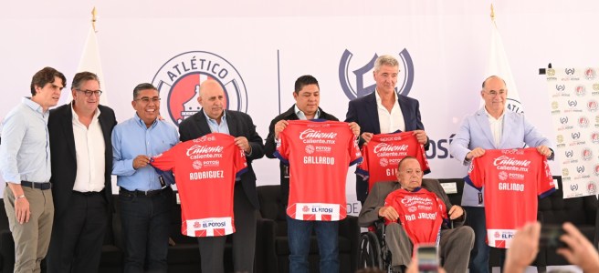 Acompañado de los socios mayoritarios, Miguel Ángel Gil Marín, consejero delegado y accionista mayoritario del Club Atlético de Madrid y Jacobo Payán Espinosa, presidente del Club Atlético de San Luis, el Gobernador agradeció el voto de confianza hacia las y los potosinos, para el proyecto de la ciudad deportiva ubicada en Soledad de Graciano Sánchez, primera inversión en infraestructura fuera de España, con la que se proyecta consolidar ambos equipos, el varonil y el femenil en la Liga MX.