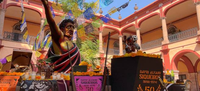 CON UN COLORIDO ALTAR DE MUERTOS DEDICADO A SIQUEIROS CELEBRA UASLP LA TRADICIÓN
