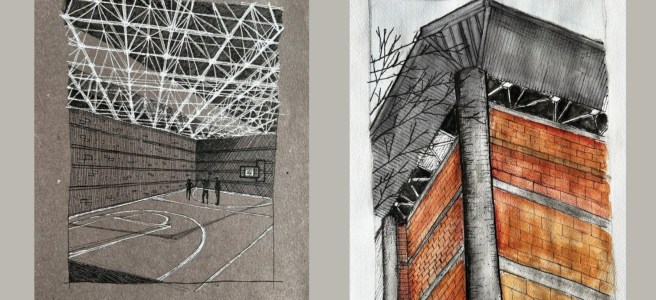 Chávez Puente explicó que eligió una perspectiva desde la cancha techada, compleja en su diseño estructural. El uso de plumones blancos y negros sobre una hoja gris aportó profundidad y estilo a su obra, lo que la diferenció de los demás participantes. “Estoy muy contento de haber competido y de haberme medido con grandes personalidades del mundo de la arquitectura”, expresó.