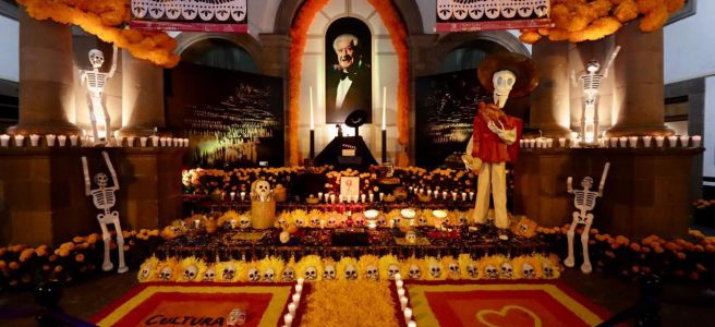 Palacio Municipal lució de colores, luces y flores con el Monumental Altar en memoria del primer actor Ignacio López Tarso, quien dejó un legado no sólo cinematográfico, sino en las artes en México y el mundo.