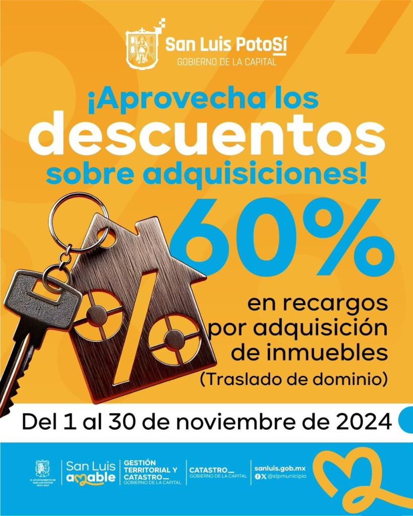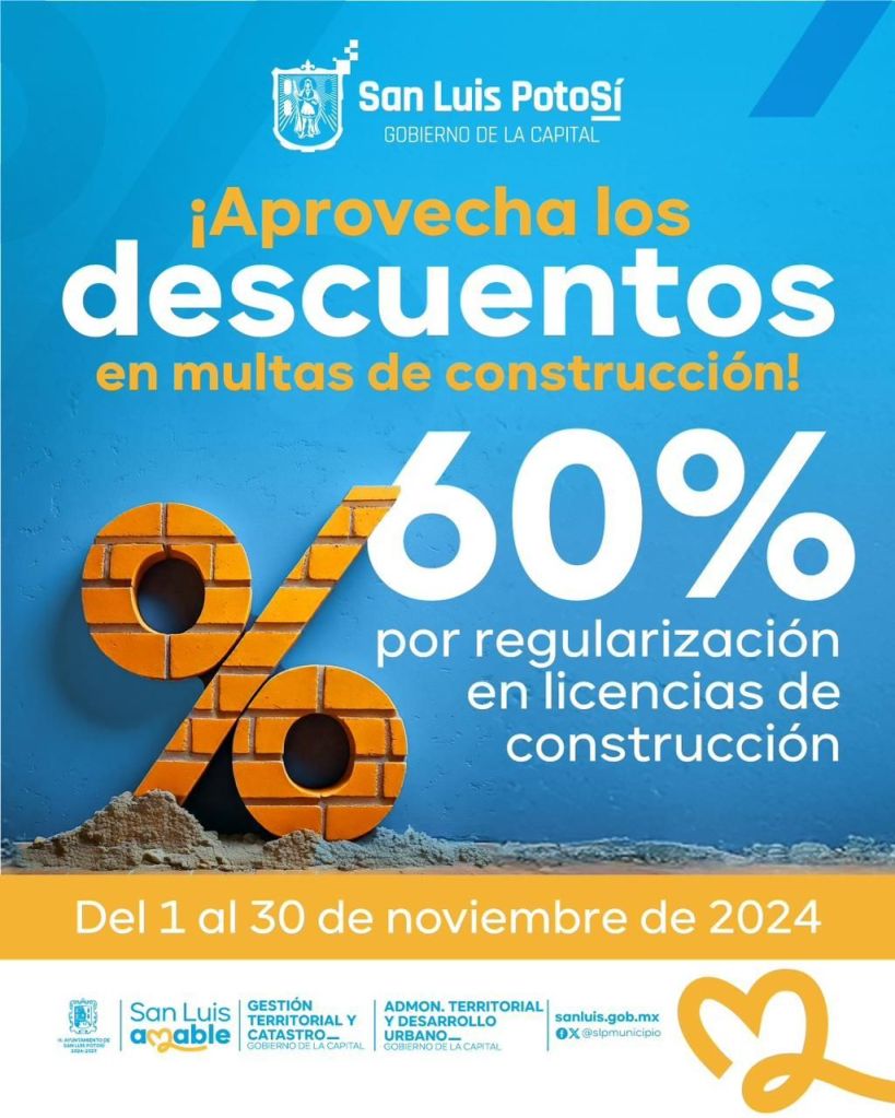 A fin de que más personas aprovechen la “Campaña de Regularización de Contribuciones Municipales”, el Gobierno Municipal de San Luis Potosí dio a conocer que durante noviembre se mantendrán descuentos, a fin de que las y los contribuyentes se pongan al corriente.