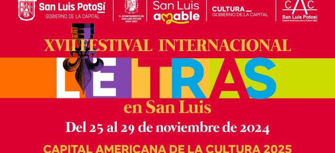 Hoy, 25 de noviembre, San Luis Potosí se convierte en la Capital de la Cultura, con la inauguración del XVII Festival Internacional Letras en San Luis. A las 7:00 PM, el Centro Cultural Palacio Municipal será el escenario de una lectura magistral que reunirá a destacados escritores nacionales e internacionales.