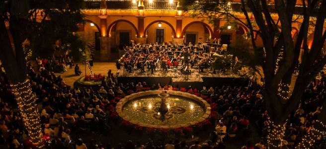 La música, la noche y un emblemático escenario fueron protagonistas del tradicional Encendido Navideño del Patio del Edificio Central de la Universidad Autónoma de San Luis Potosí (UASLP), que registró un lleno total de espectadores.