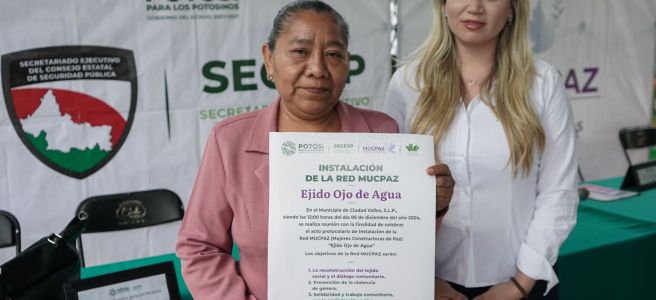 El Secretariado Ejecutivo del Consejo Estatal de Seguridad Pública (SECESP) y el Instituto de Desarrollo Humano y Social de los Pueblos y Comunidades Indígenas (Indepi) instalaron la primera red indígena de Mujeres Constructoras de Paz (Mucpaz) en el Ejido Ojo de Agua, en Ciudad Valles.