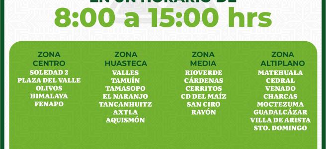 Las oficinas que brindarán servicio son: Soledad 2, Plaza del Valle, Olivos, Himalaya, Fenapo, Ciudad Valles, Tamasopo, Tamuín, El Naranjo, Tancanhuitz, Axtla y Aquismón, Rioverde, Cárdenas, Cerritos, Ciudad del Maíz, San Ciro y Rayón, Matehuala, Cedral, Venado, Charcas, Moctezuma, Guadalcázar, Villa de Arista y Santo Domingo.
